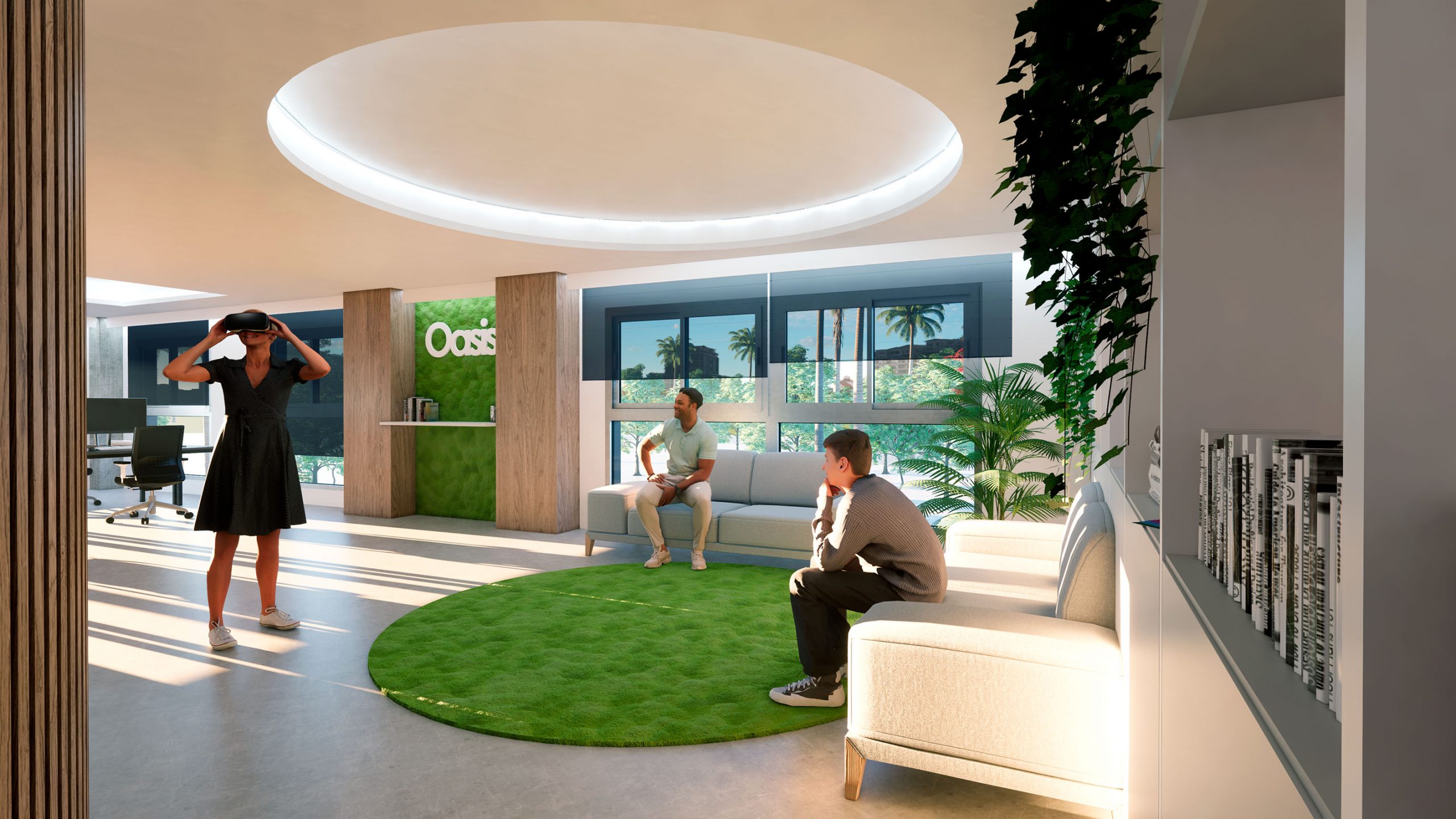 La oficina incluye zonas de descanso, trabajo y de reunión, así como zona de realidad virtual.